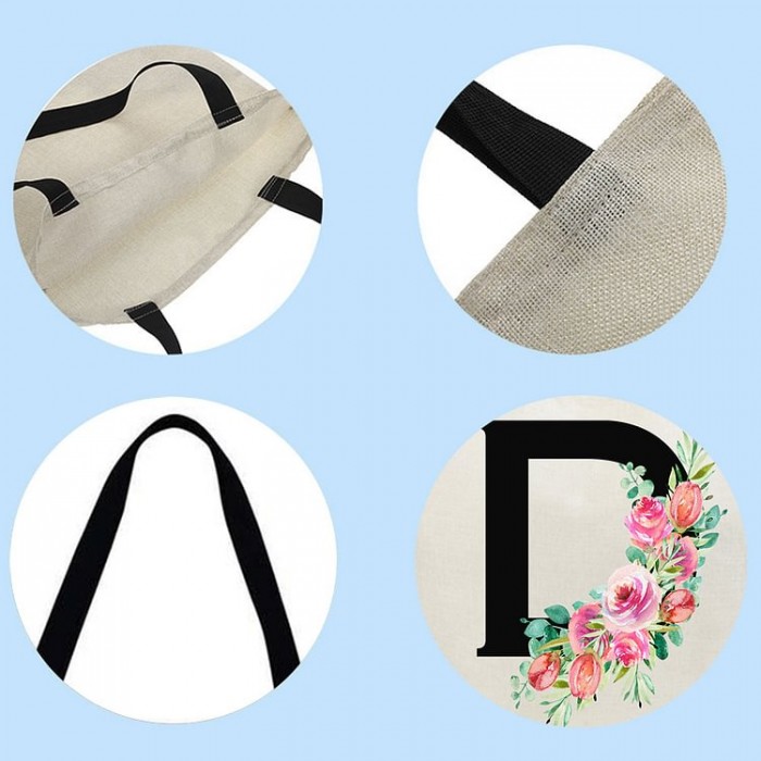 Linen Tote Bag - 26 Initials Flower