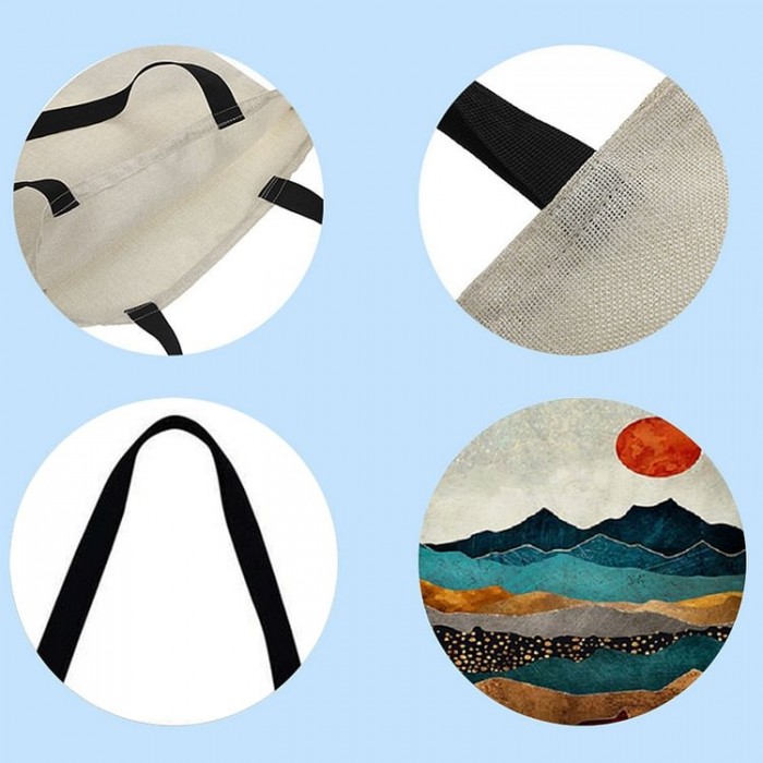 Printed Linen Large-Capacity Environmentally Friendly HandbagFeatures:1: Environmentally friendly high-quality linen material.2: Double sided printing..