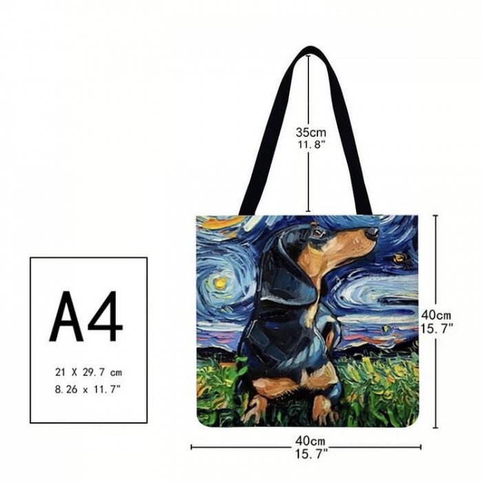 Linen Tote Bag - Van Gogh/Starry Sky Animal Dog