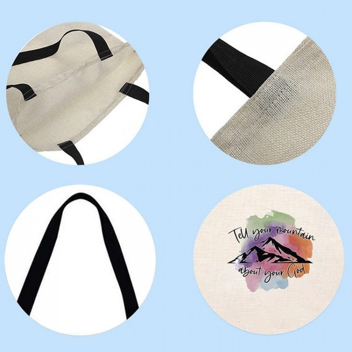 Tell your Mountain about your god - Linen Tote Bag